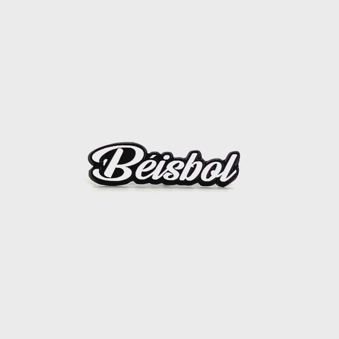 Regardless of whether you call the game baseball or Béisbol, the word invokes lush green fields, the smell of leather, and uniformed players fighting for their team. This pin celebrates our game in our language. This black and white pin looks great on any ball cap.